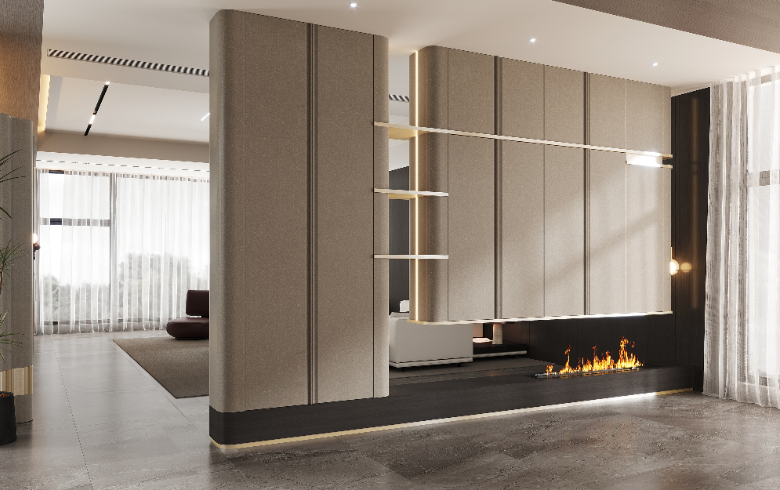 一門到頂玄關櫃,懸浮設計打破條條框框的束縛,輕盈通透,重塑空間形態;圓弧工藝搭配深色地台,進門就能感受到雅奢高級感。