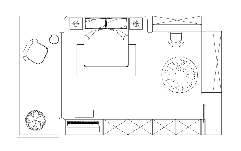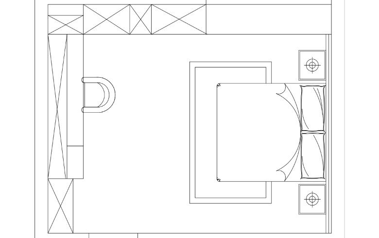臥室空間大,床頭可以不靠牆,使用一個梳妝台隔斷,直接多出一個梳妝區域,梳妝台靠近衣櫃,日常換衣化妝都很方便,也節省了空間。