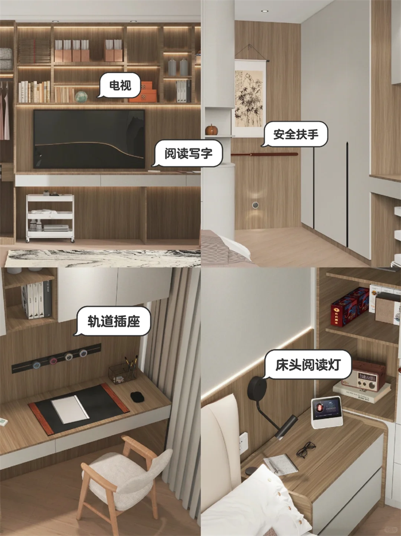 ▪️即使年輕人可能不選擇床頭櫃,父母房間裏一定要安排上,放置書、老花鏡、保溫杯等日常必需品~