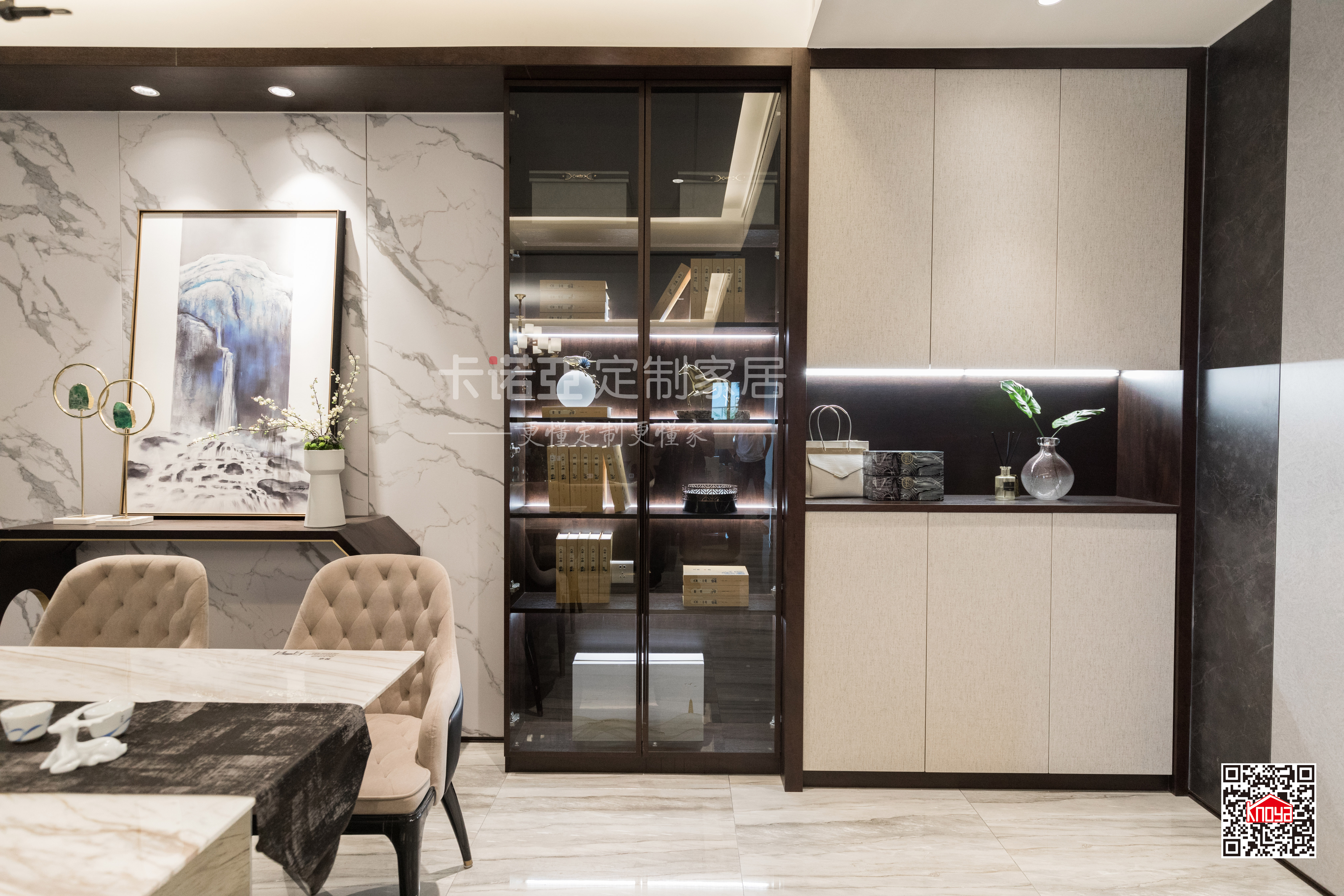 作為企業高管的她,經常出國,時尚敏感度高,鍾愛優雅的輕奢,喜歡純粹的極簡,希望能將兩者很好地結合在一起,追求顏值之外更要有豐富的實用功能,讓家收納強大、整潔溫暖。另外,業主希望能提供硬裝+定製家具+軟裝的一站式配齊服務。