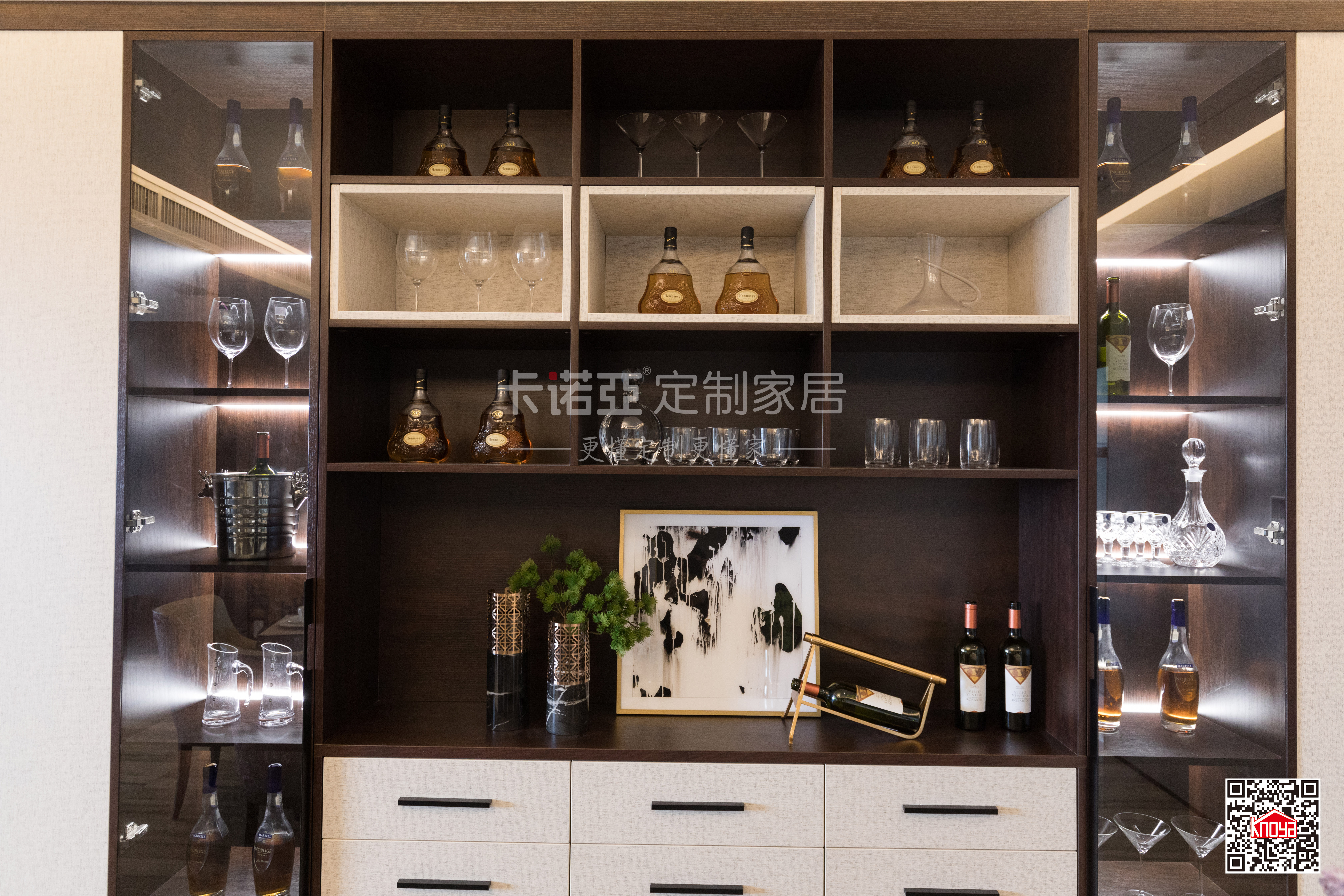 黑櫃身板材,質地通透,觸感細膩,為空間增加一絲典雅輕奢氣息。
