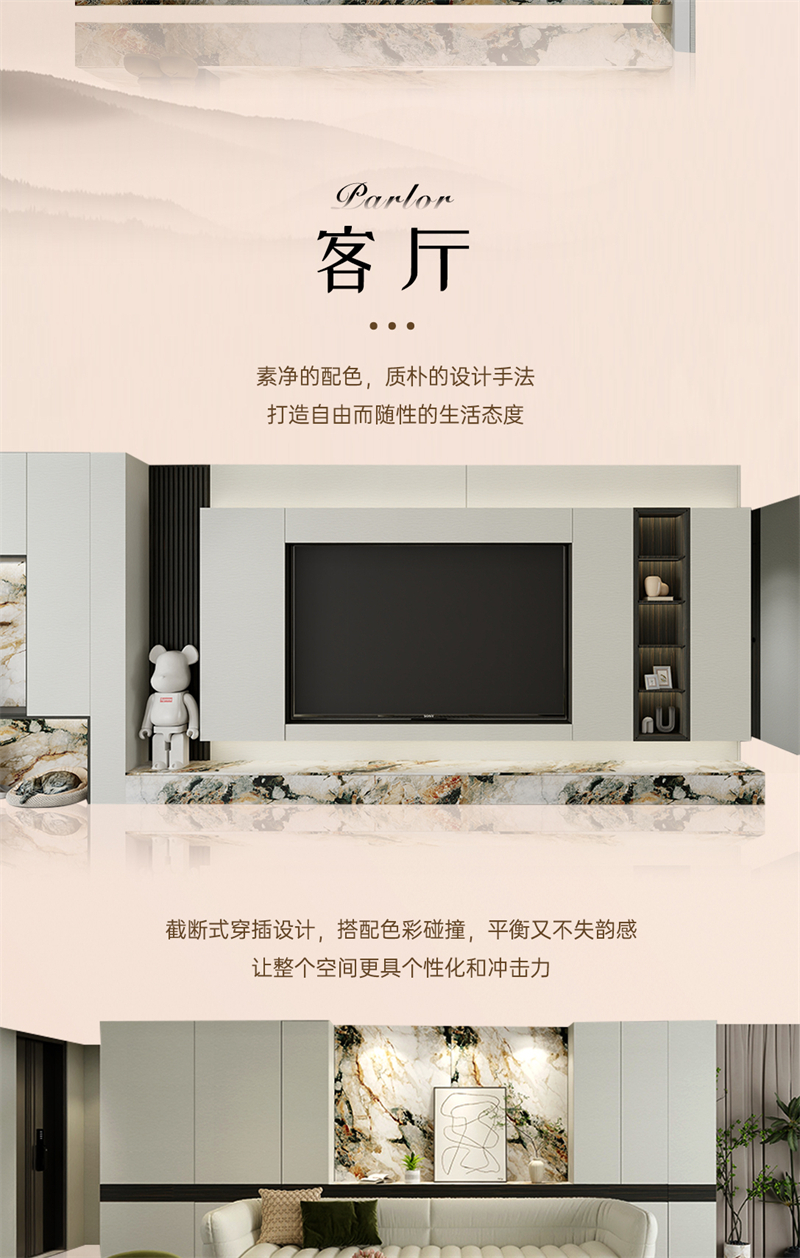 借助雲水紋的元素,通過流動的線條,波動的紋理和現代的設計手法,打造舒適、放鬆、愉悅的家居氛圍。