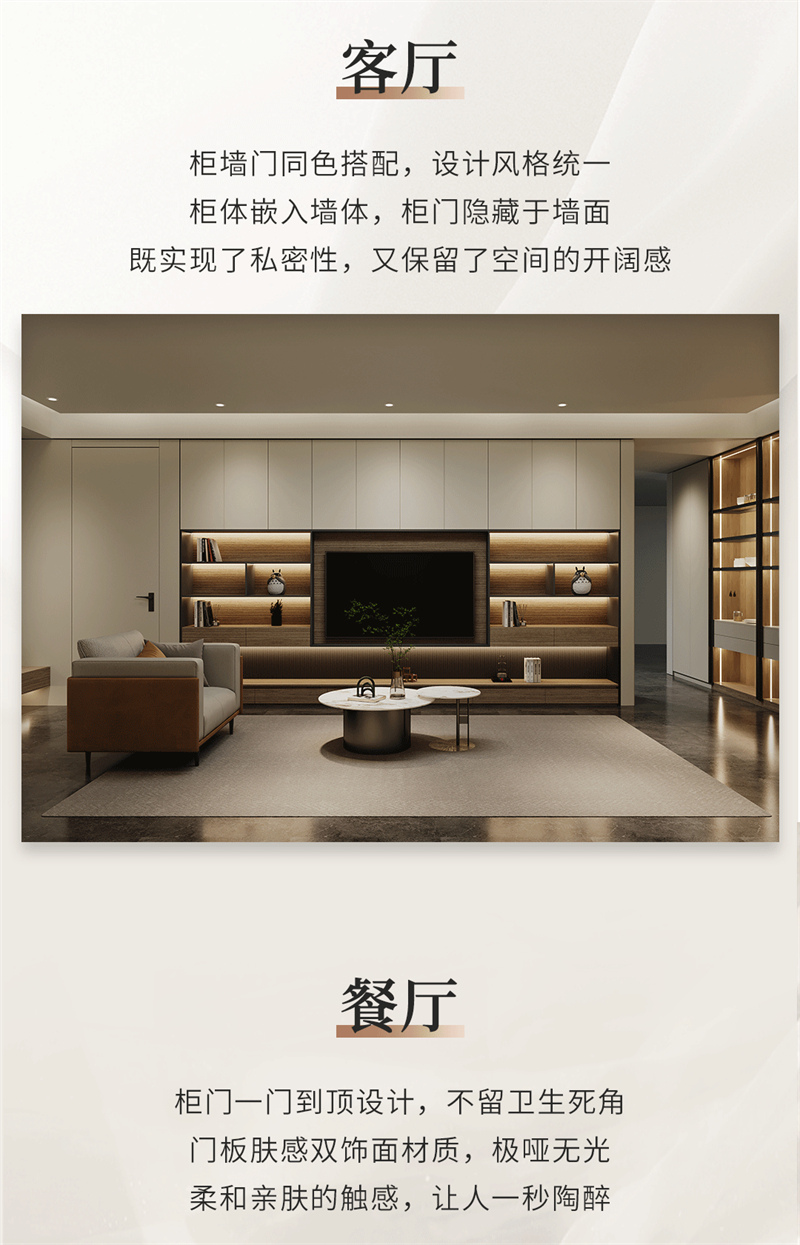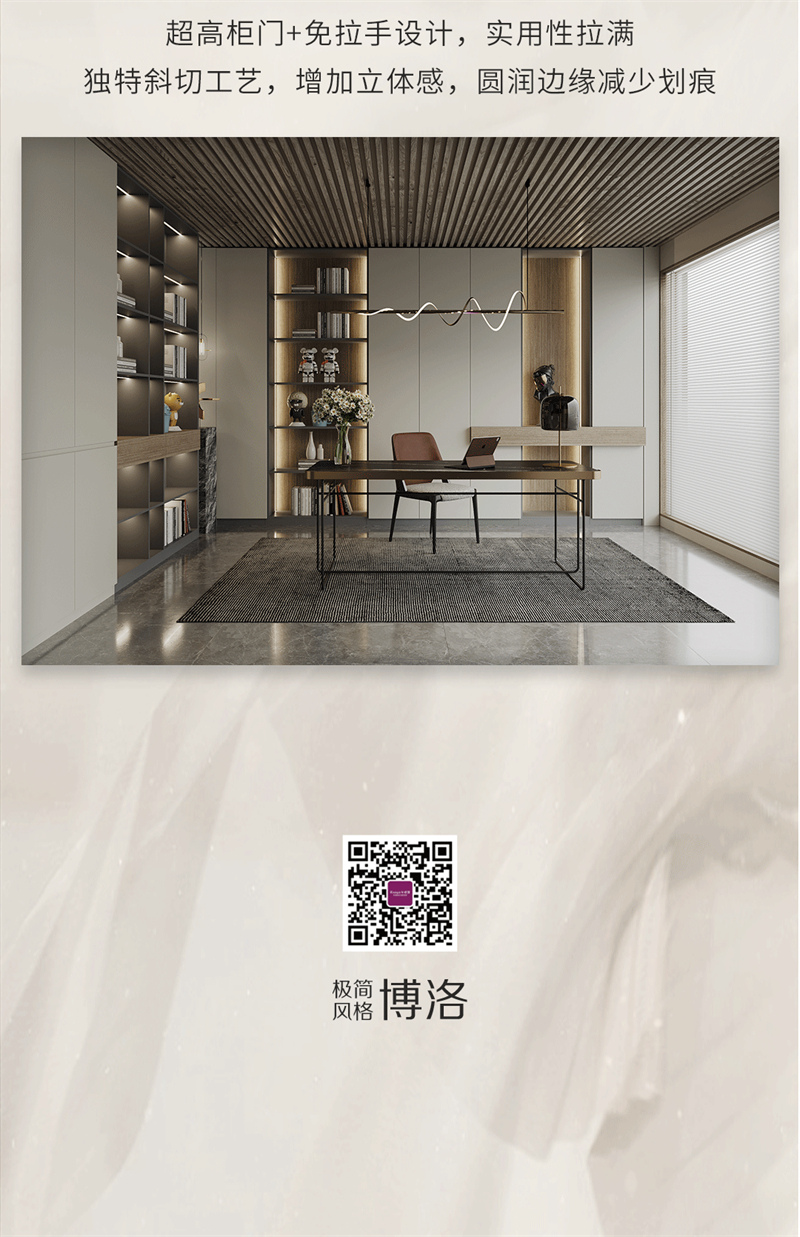 博洛Ⅱ | 極簡風格質感生活 內外兼修 有顏有質 健康環保融合意式極簡的設計手法,黑白、金屬與木製在此交融,精致的弧形線條簡約而大氣,搭配大地色係營造出安靜優雅的氛圍,低飽和度啞光色彩的搭配,呈現自然溫馨的空間。