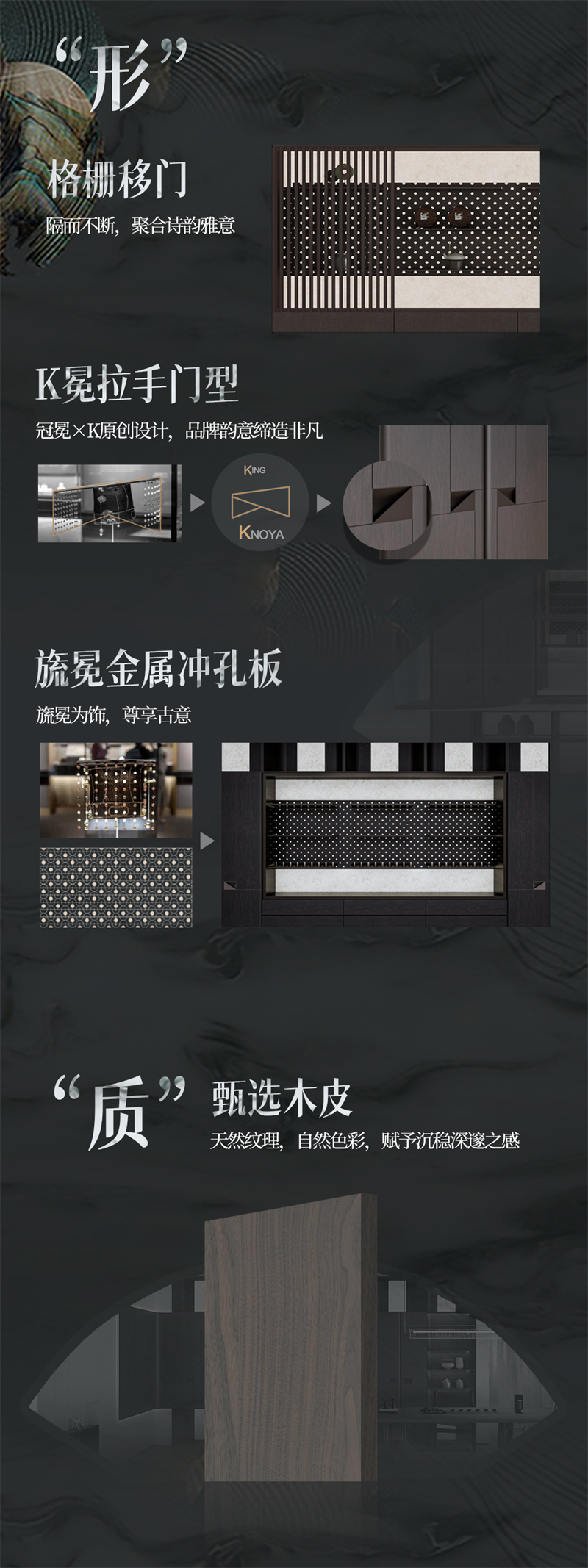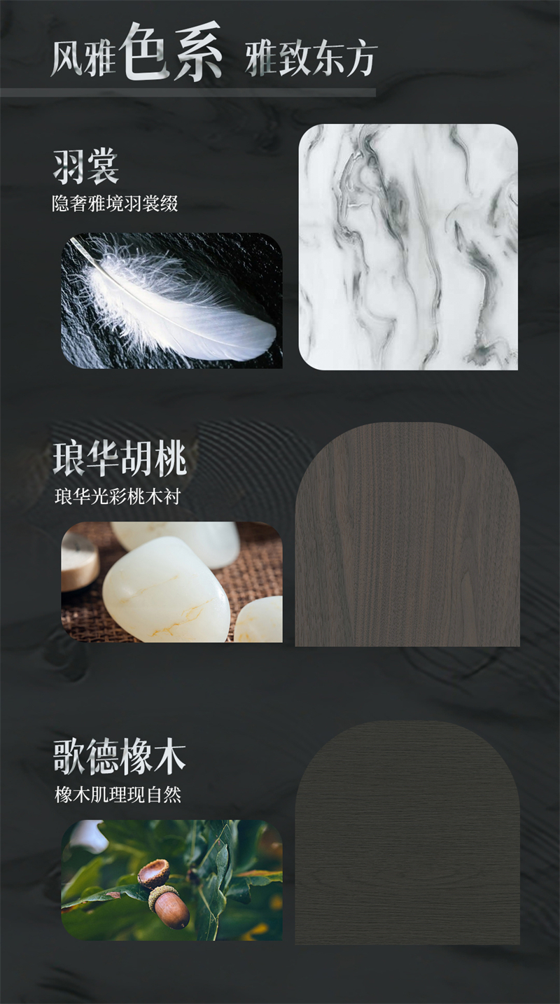 藏玉係列以“形、質、氣、韻、神”的五重境界,以小見大、步移景異,串聯式的節點打造層次遞進的空間情緒。從歸家禮儀、空間格局以及設計細節等多個維度,建構禮序雅境。