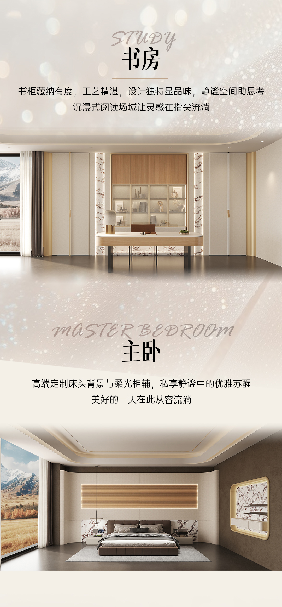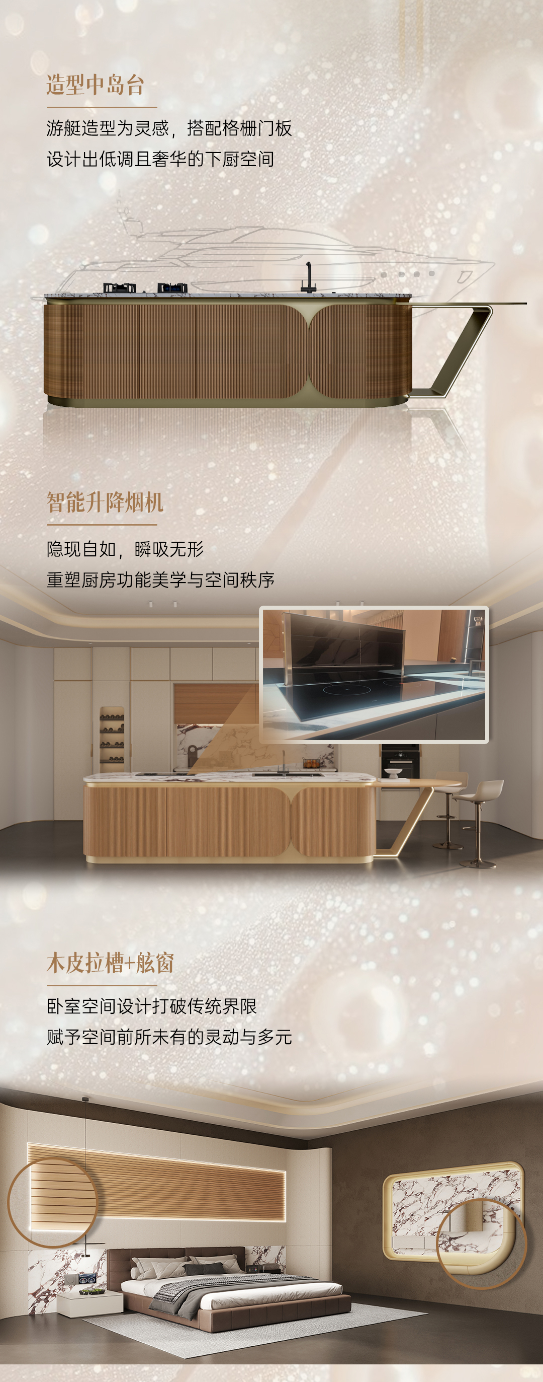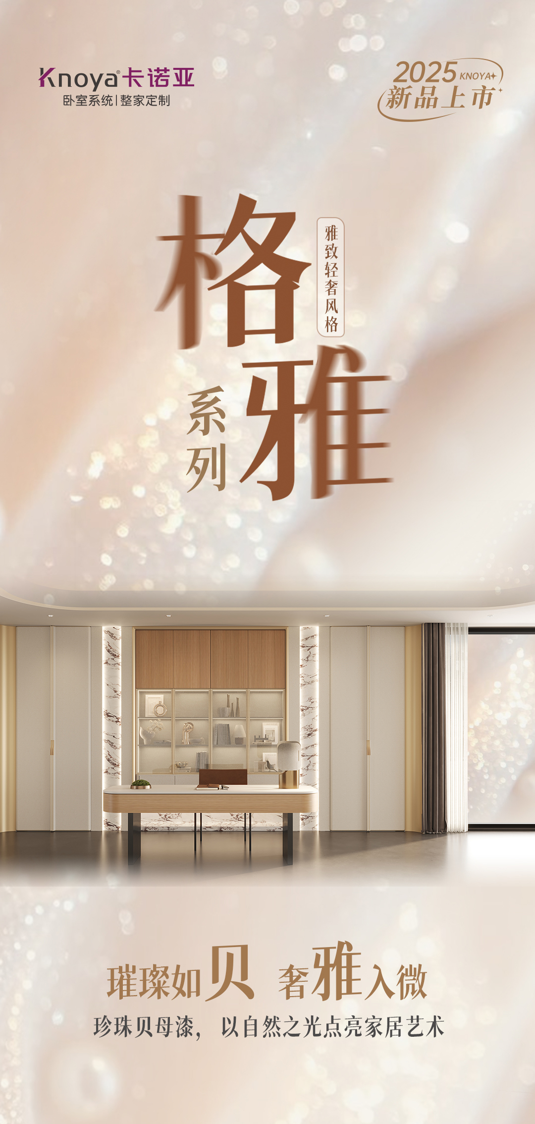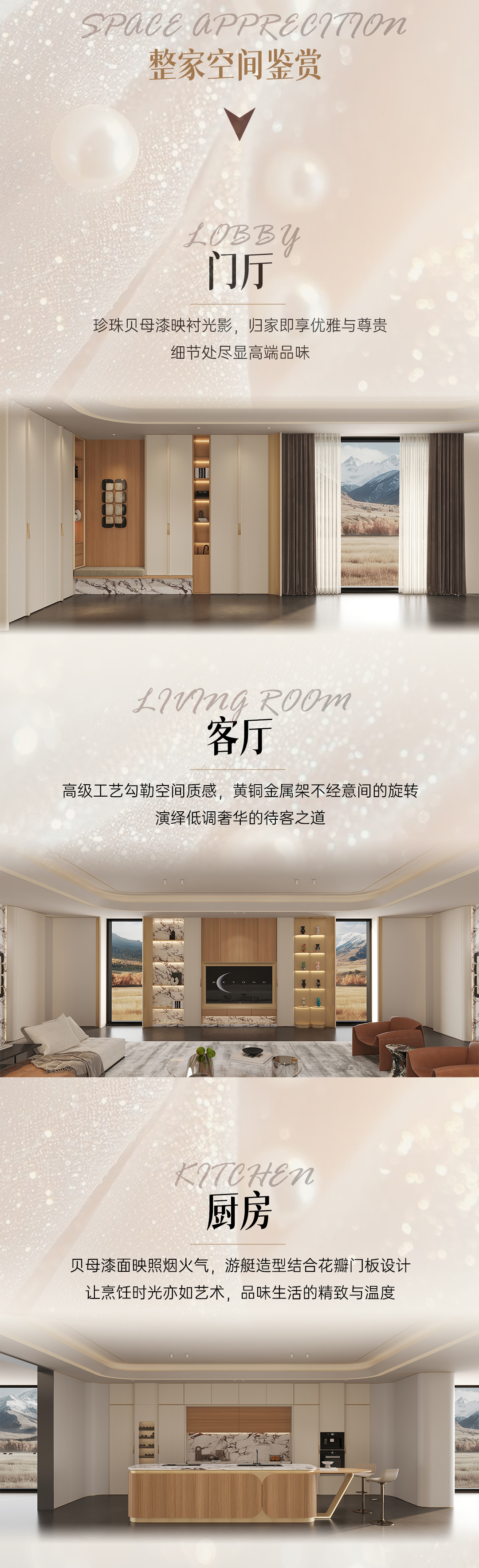 2025年新品係列,格雅係列 |雅致輕奢風格從珠寶中獲得靈感,專注於體積、線性與移性的精妙把握,巧妙展現藝術與建構間的微妙關聯,以居者需求為基礎,依據整體空間開放度的細膩層次,打破傳統界限,賦予空間前所未有的靈動與多元。人群定位:30至45歲藝術家家庭,對生活品質持有極致追求