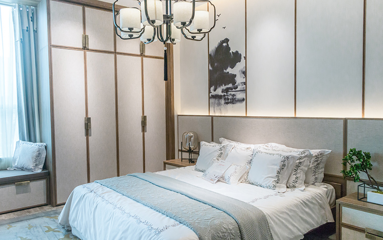 臥室主要是讓主人擁有良好的睡眠。水墨畫護牆係統,防潮隔音,營造安靜的睡眠空間,臥室一隅的定製飄窗,既可以打發休閑時光,又可以收藏零碎的小物件,尊享生活帶來的恬靜安然。