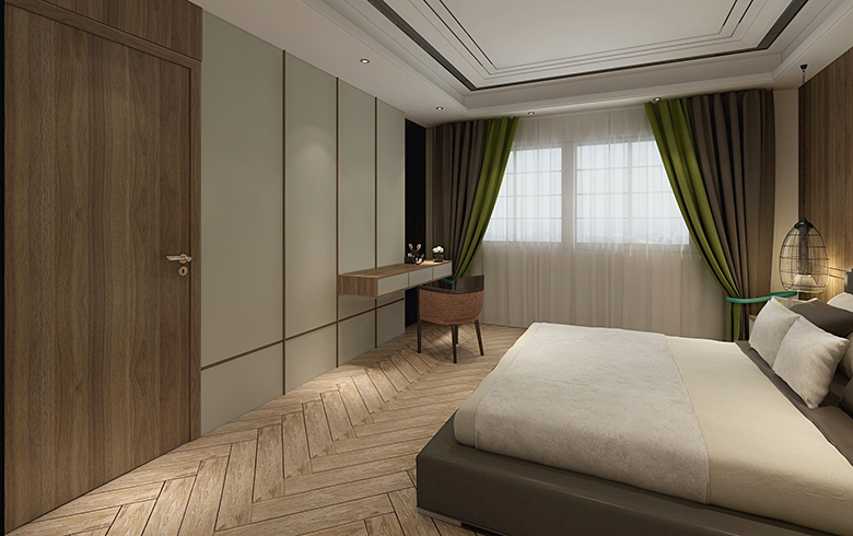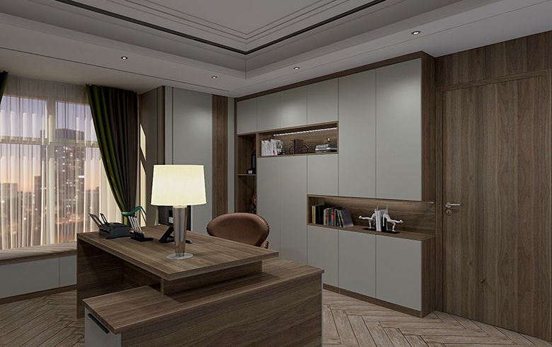 護牆係統采用禦品木+紳士灰的創意混搭,配合柔和燈光,營造靜謐舒適的香蕉视频黄色版環境,專利扣線與板材花色保持統一無色差,且很好地包梁包柱,極大地增添了整體空間的統一感。