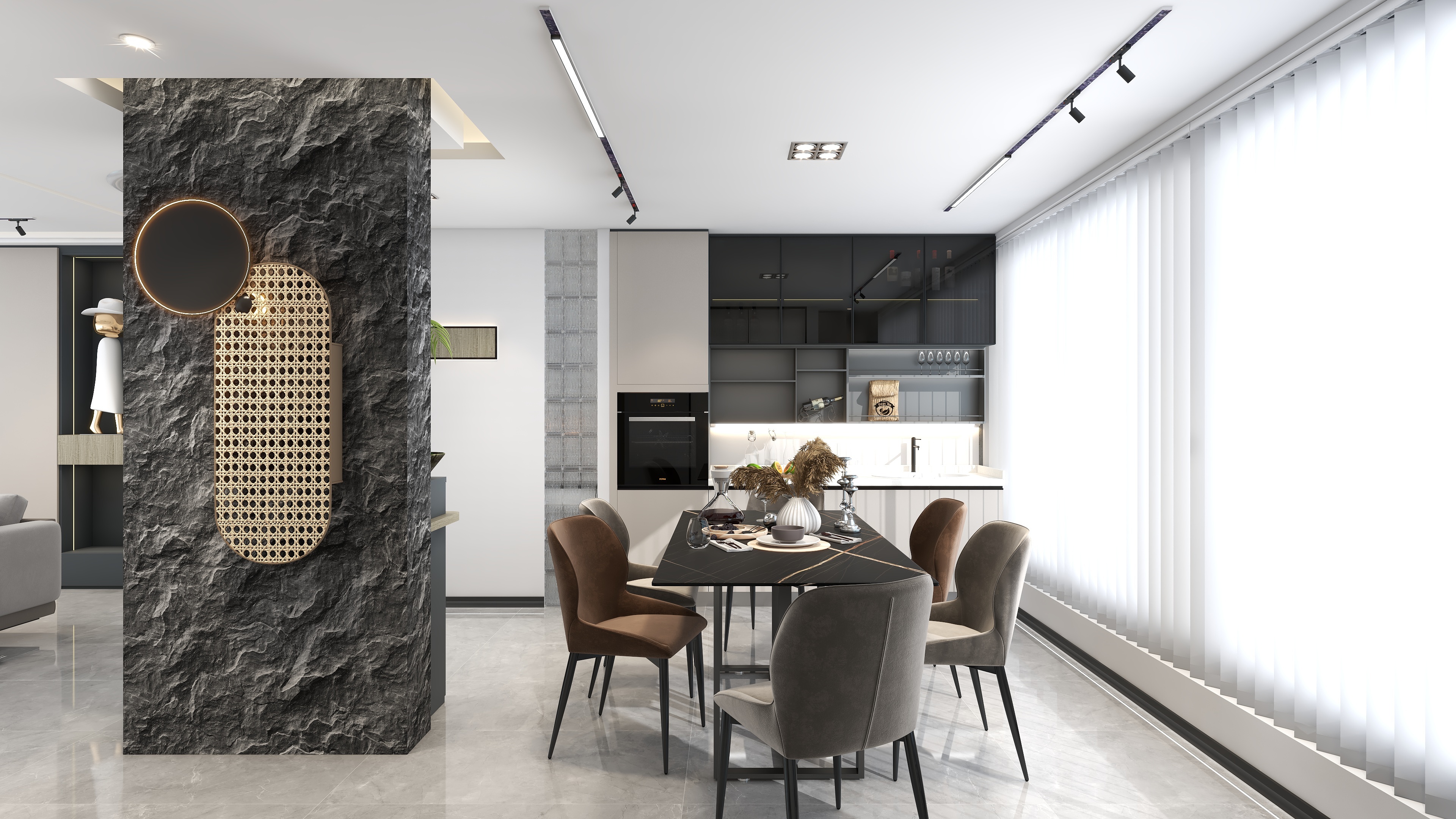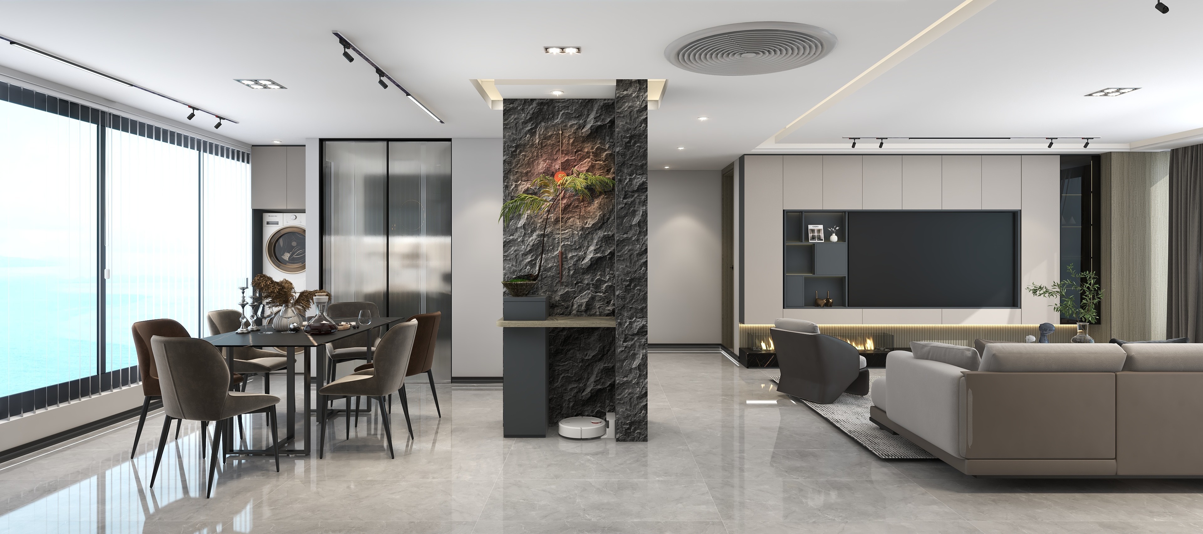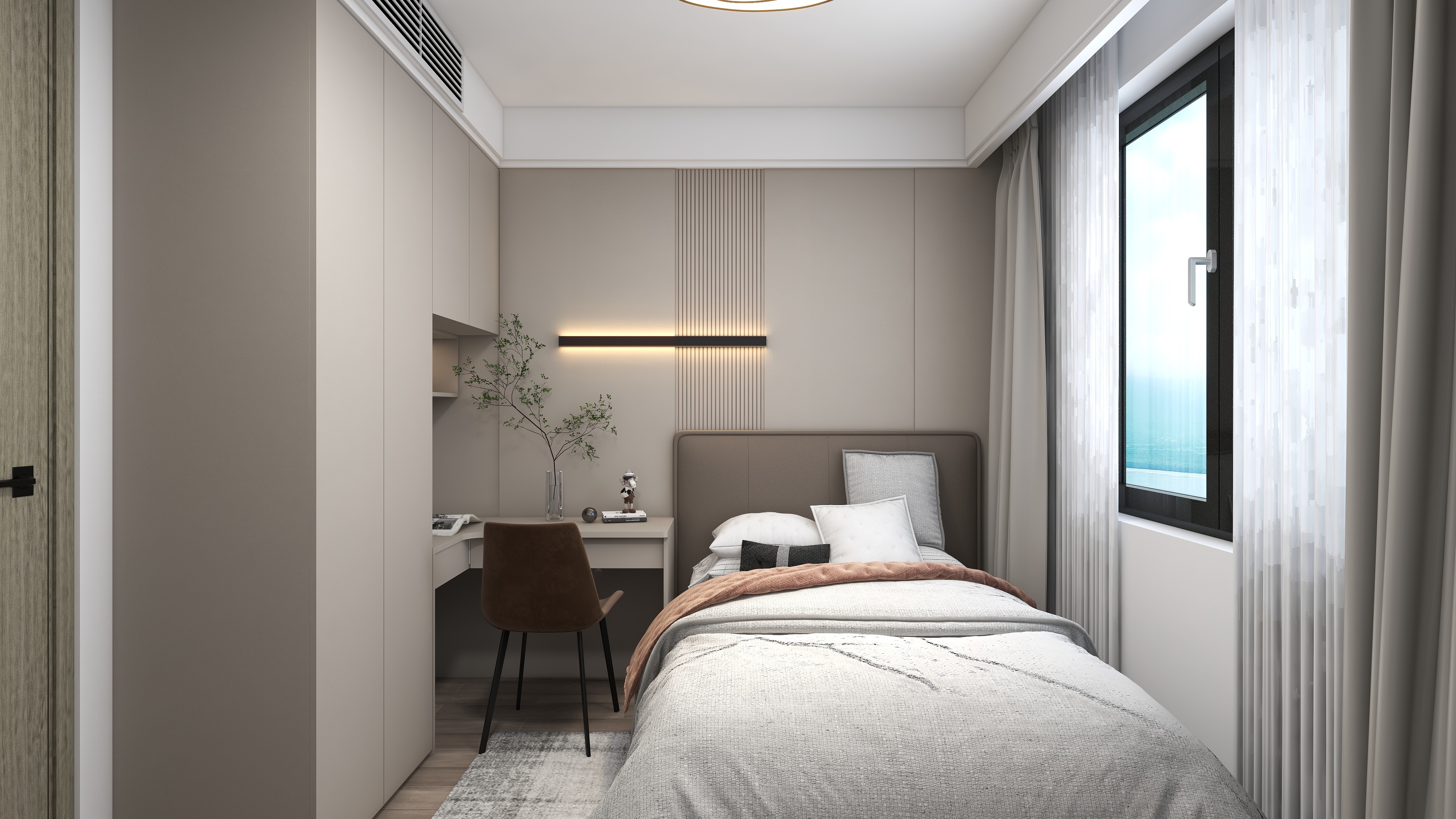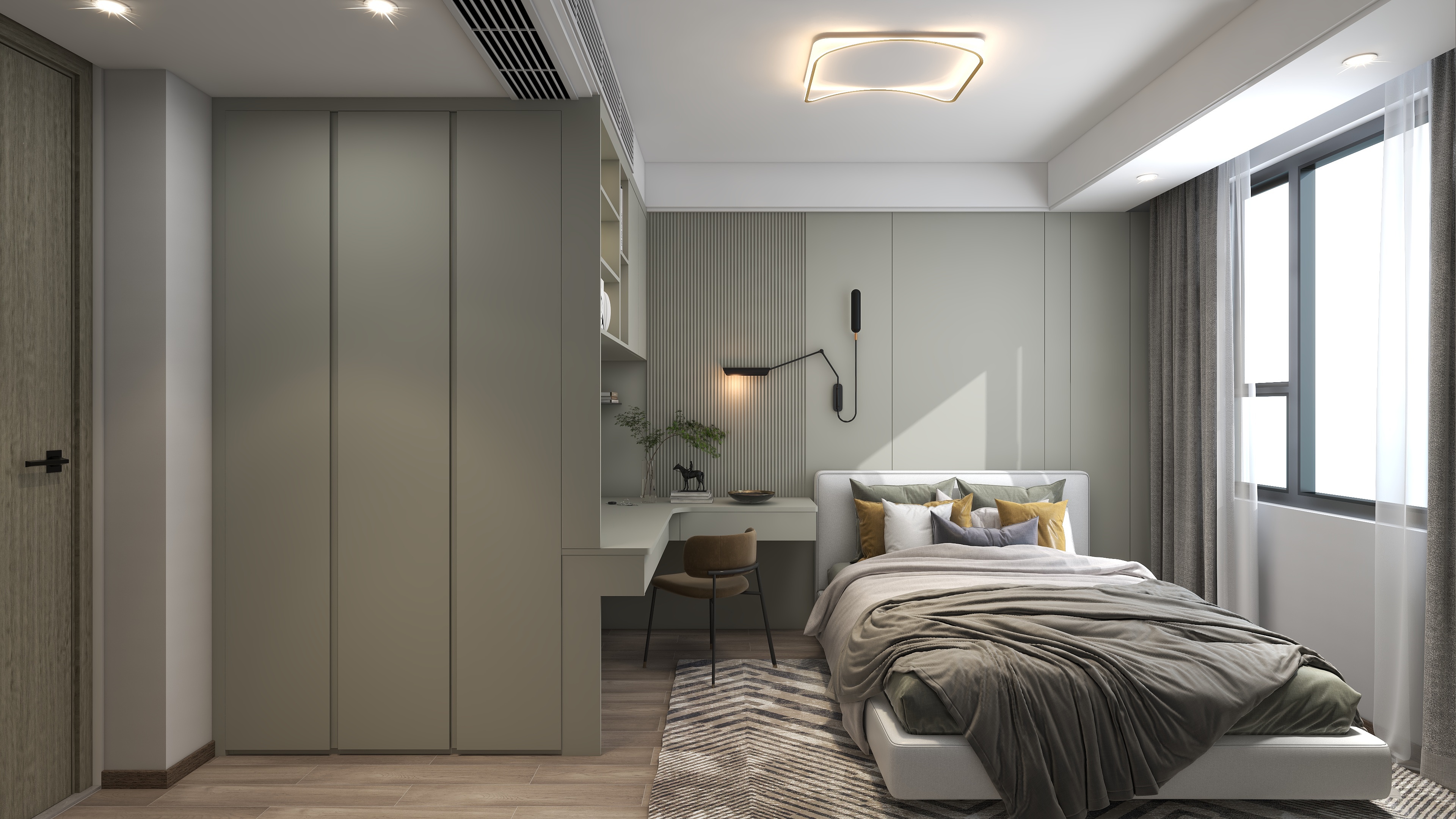 《櫟白》本案是四口之家,有三歲的孩子和老人,設計師根據每個人的需求與習慣重新規劃了空間,保留了三個房間,整體色調運用了莫蘭迪的配色靈感,91香蕉污视频主要打造的是櫃、牆、門一體化設計,同色係的高顏值整家,整體以收納娛樂生活為一體,以靈活互動與自由開放為主旨,適當的留白,優化細節,衍生個性,締造出視野闊朗的簡約格調。設計師理念:設計不止是看起來怎麽樣,也不是感覺怎麽樣,而是怎麽樣發生作用並產生價值整家之美|第五屆91香蕉污视频杯全國家居空間設計大賽