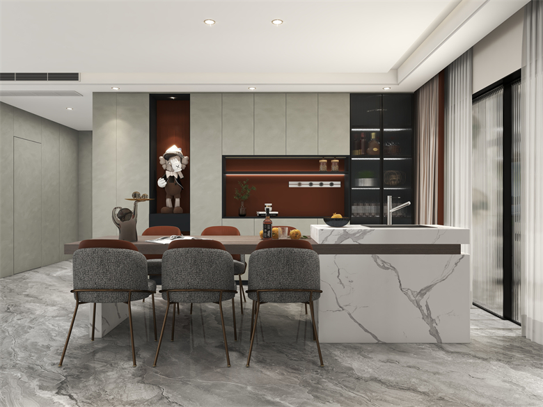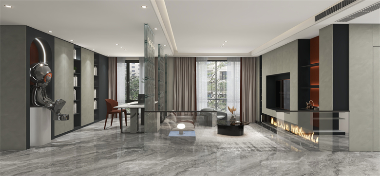 對於這套戶型的定義是實用的基礎上滿足業主時尚又年輕化的需求。整體空間從入戶到客餐廳都有一套強有力的流線進行引領。比如燈光的運用,材質的拚接和反光的處理都更好的表現了空間的質感和通透性。 空間的整體動線為業主更好的規劃了日常生活的走向,根據對業主年輕化和職業的分析,在設計中添加了手辦裝飾以及對職業需求的一些理解。設計師理念:設計並不是簡單的堆砌,好的作品是有生命力的!整家之美|第五屆91香蕉污视频杯全國家居空間設計大賽