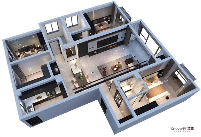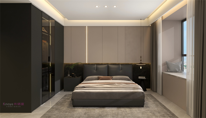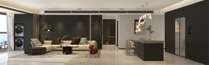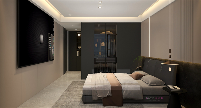 本案業主更注重與家人們的空間情感交流。戶型牆體的拆改 使布局流線更順暢,更鍥合業主的需求。玄關客餐廳采用門牆櫃一體化設計,化繁為簡。鞋櫃穿插式設計既有儲物功能又有美感。啞光岩板嵌入式電視背景+深色係牆板隱形門,延伸整個空間,壁爐和金屬套格更顯高級感,沉穩大氣。內嵌式酒櫃包冰箱管線機,兼具儲物、裝飾、顏值一體。餐桌島台做了錯位式設計,即貼合了業主的日常家居需求,又與整體空間色係相呼應。臥室無主燈的設計還具備多種情景模式,進一步提升了臥室的氛圍體驗。