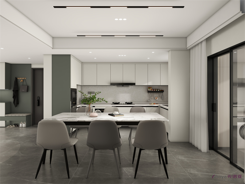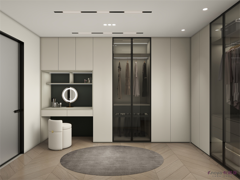 作品介紹:空間以簡潔明快的淺色為主,無主燈的設計,極簡中又不失淡雅,呈現明亮幹淨的美,再用小麵積輔以明亮的色彩,凸顯出空間層次。香蕉视频污版APP下载的亮點在於電視背景牆,底下鏤空的設計比較少見,電視背景牆後麵便是休閑區,收納櫃和鞋櫃銜接形成一個整體。餐邊櫃和入戶玄關銜接,入門即是風景。開放式香蕉网站免费观看污和餐廳,讓空間看上去更加寬敞。主臥青綠色點綴,增加層次,衣帽間梳妝台一體,L型衣帽間將空間分成兩塊,避免了衛生間對著床的現象。次臥陽台休閑區,有著一整麵的收納櫃,可以看書,也可以娛樂。床背景上下分段,加上燈帶增添氛圍感。香蕉视频黄色版鏤空玻璃門木門虛實結合。
