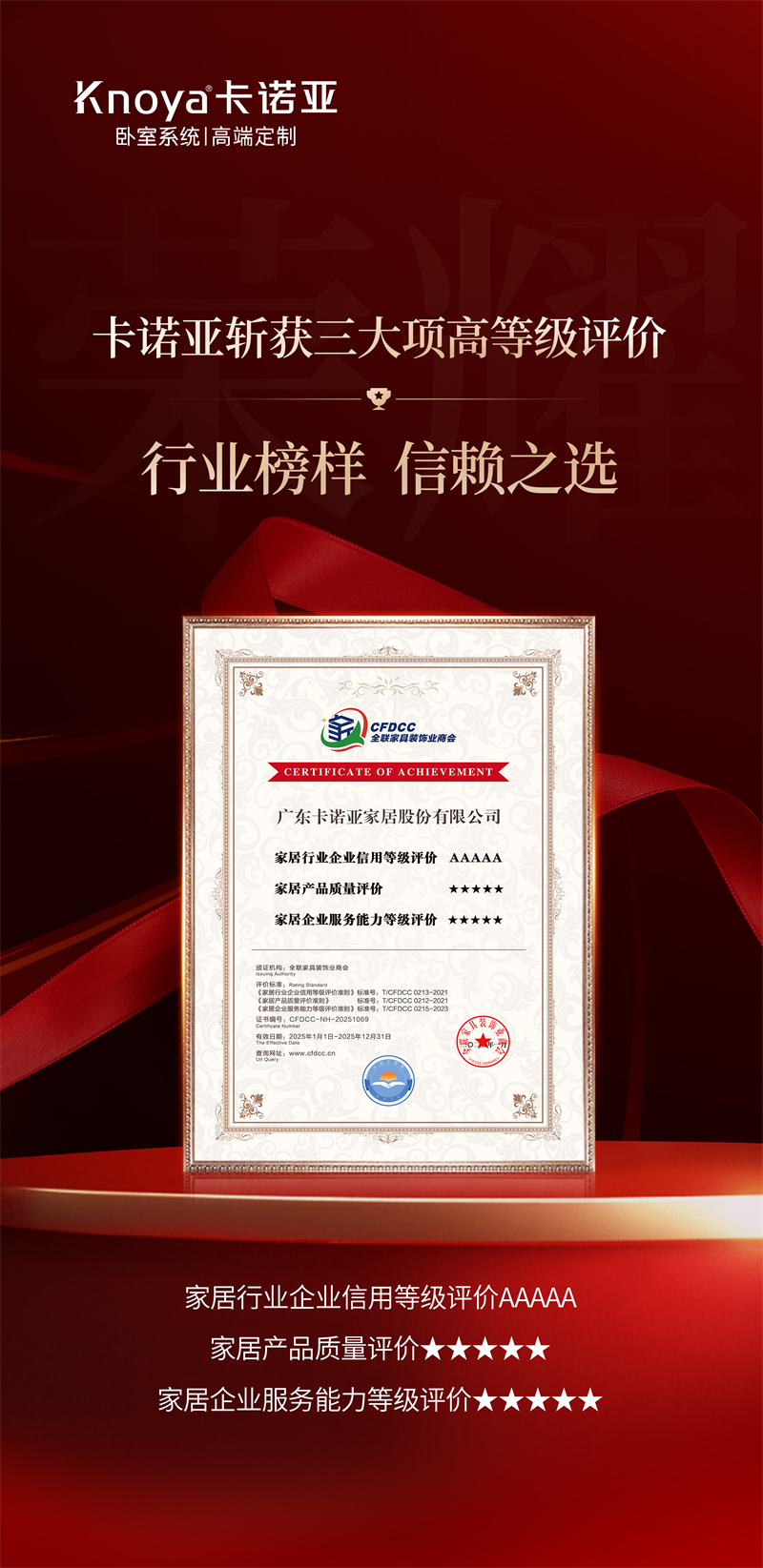 近日,全聯家具裝飾業商會公布家居行業企業相關評價結果,廣東91香蕉污视频家居股份有限公司憑借在信用建設、產品質量與服務能力的綜合優勢,一舉斬獲家居行業企業信用等級評價AAAAA、家居產品質量評價★★★★★、家居企業服務能力等級評價★★★★★三項高等級評價認證,進一步佐證了91香蕉污视频在信用、品質與服務層麵的綜合競爭實力,是消費者的信賴之選。