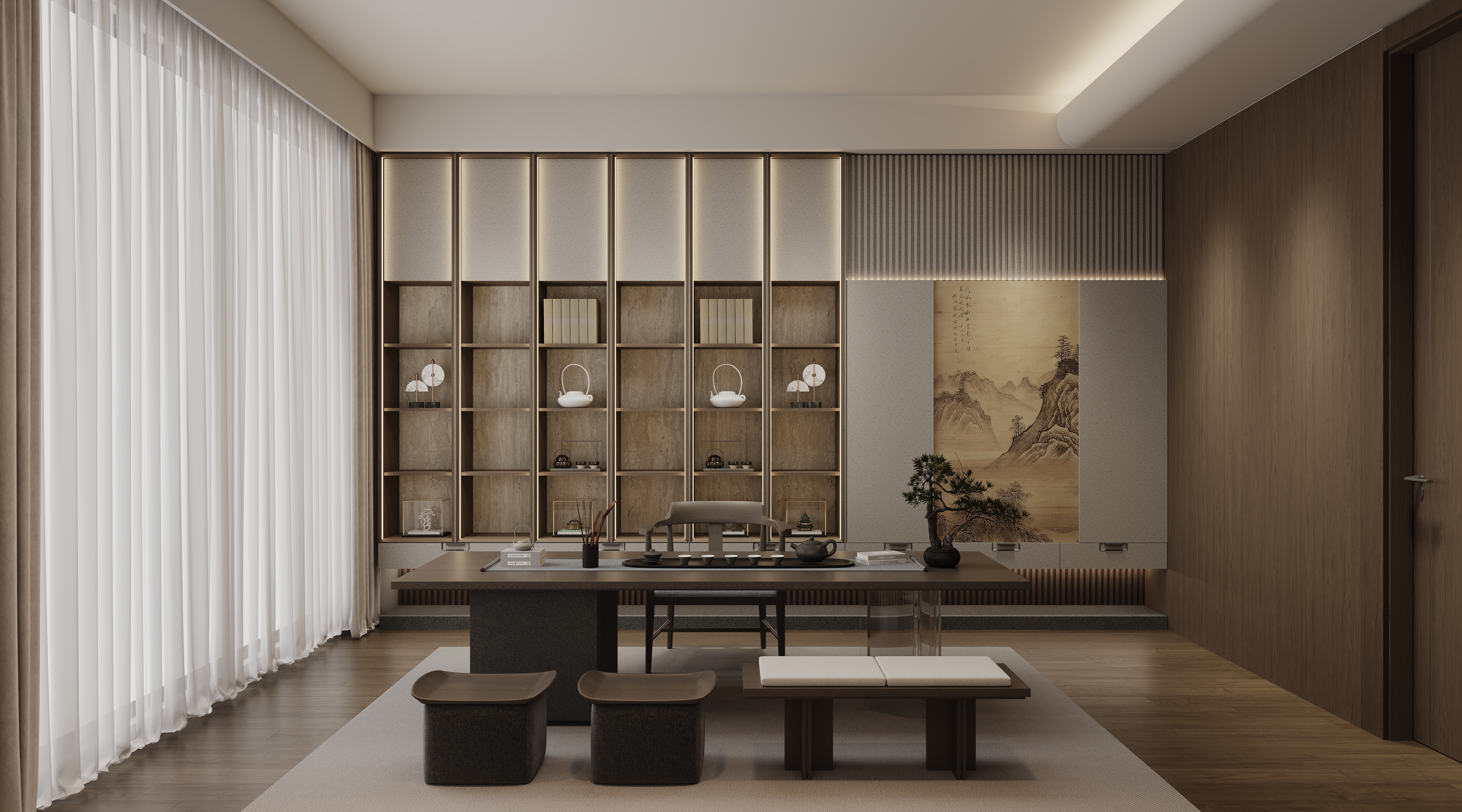 墨箋係列溯源宋代“雅集四藝”,以“簡雅、留白、意境”為核心設計元素。經典回紋拉手複刻宋式雅韻,雲箋白、清秋胡桃等素淨色調如水墨入畫,木質、布藝、石紋等多種材質混搭,凝萃“簡而不陋”的空間質感,展現宋代美學的當代詮釋。