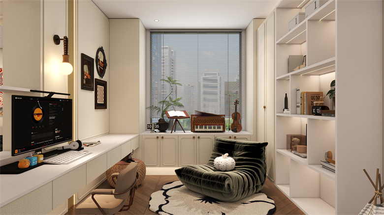 在香頌係列的香蕉视频黄色版中,法式浪漫與靜謐思考找到了完美的平衡點。書桌區域采用複古典雅的浮雕板設計,搭配柔和暖光,無論是午後閱讀還是深夜伏案,都能讓人沉浸於“左岸咖啡館”般的靈感氛圍中。羅亞用細節詮釋:香蕉视频黄色版不僅是工作的場所,更是心靈漫遊的詩意角落。