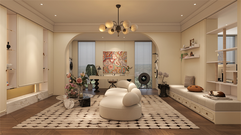 羅亞全屋定製以留白與層次為創作核心,將法式線條的精致、天然布藝的溫潤、奶油色係的醇厚融為一體,讓空間如旋律般流淌。