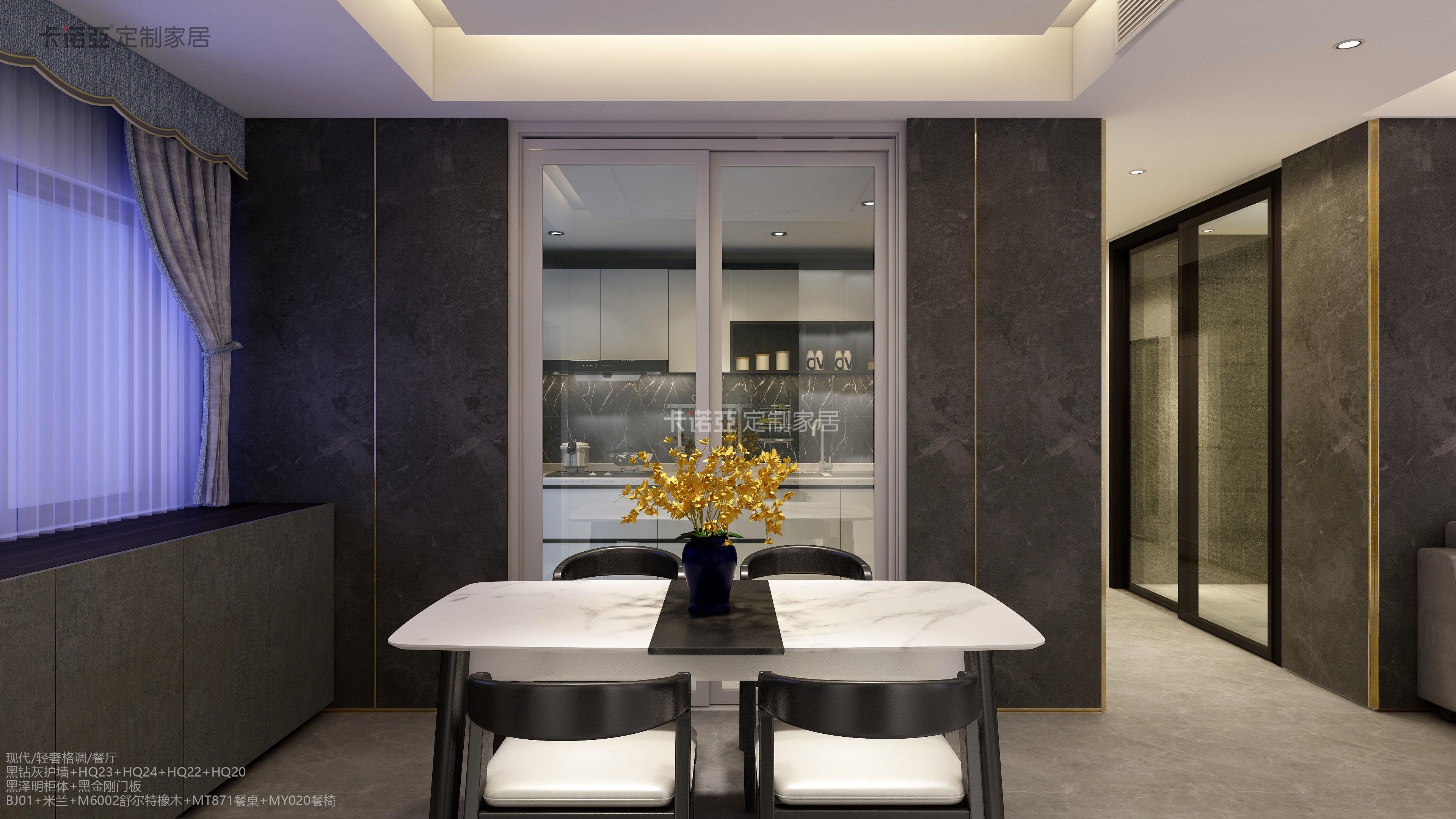 另外在家具材質的選擇上,除了皮革、絲絨外,還會用帶有奢華氣質的金屬、玻璃、大理石等元素,來彰顯輕奢風的質感。