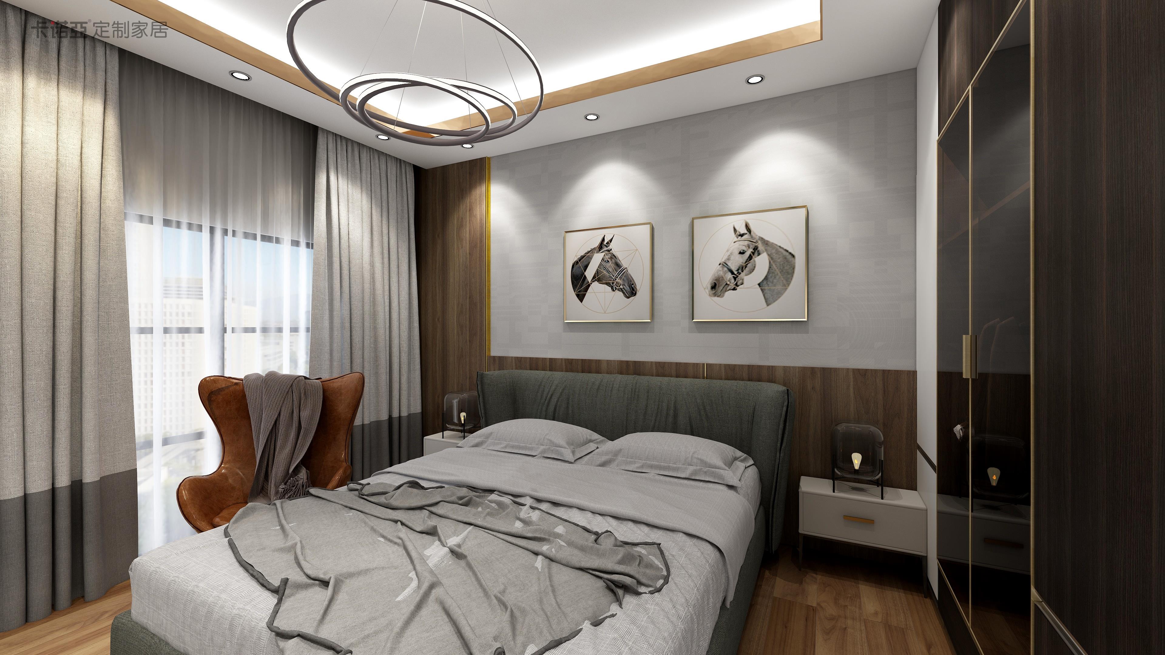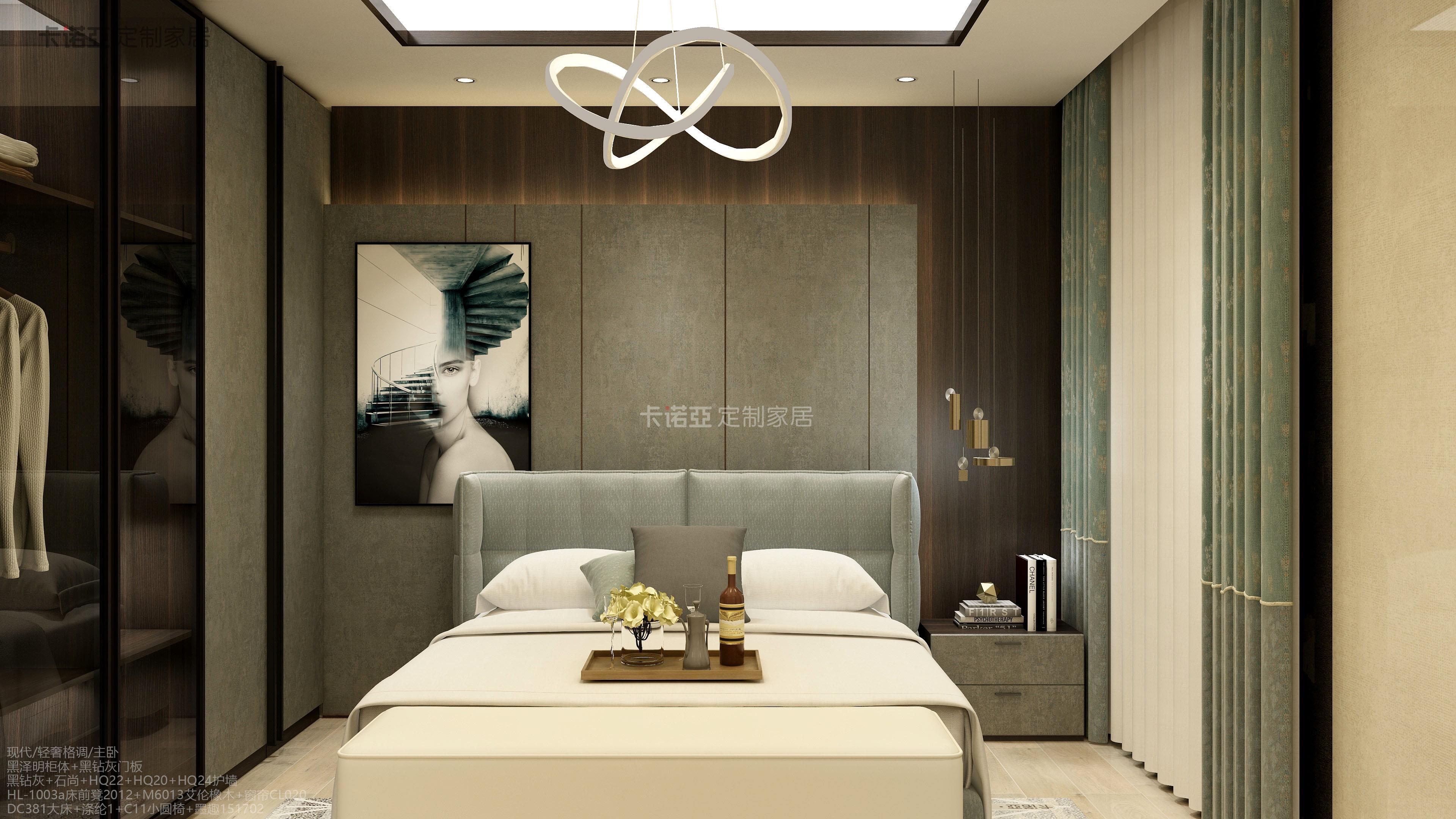 臥房是家裏麵主要的休息場所,所以能不能營造出舒適的宜居感非常重要。輕奢風的臥房,床頭可選擇軟包設計,背景牆建議護牆板形式,優雅輕奢的同時,也能提高使用的舒適度。床品建議以淺色為主,這樣不至於讓空間的色彩太過搶眼,更顯舒適協調。