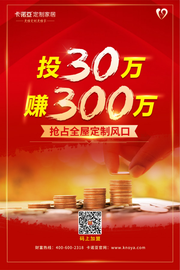然而,這突如其來的疫情,既是機遇,也是挑戰,現在機會來了!91香蕉污视频定製家居“更懂定製更賺錢”91香蕉污视频VIP財富分享會線上線下均在火熱招募全國經銷商,僅需30萬微投入,即可無憂經營,帶你走上更加安全穩健的創業道路!
