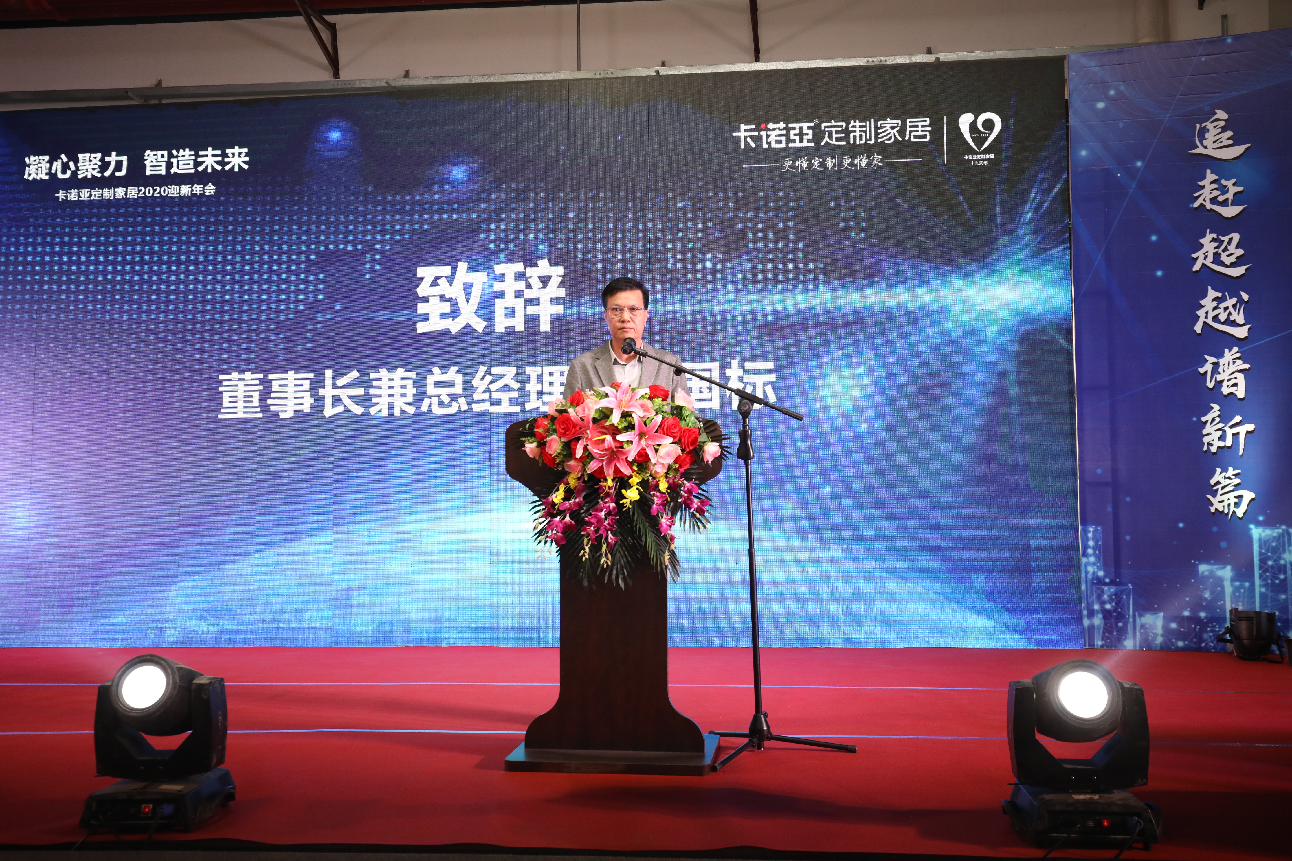 2020年1月10日,“凝心聚力,智造未來”91香蕉污视频定製家居2020迎新年會,在91香蕉污视频清遠工業4.0智造基地隆重舉行,共有1500餘人參加了此次活動。91香蕉污视频董事長兼總經理程國標先生應邀作為領導嘉賓出席會議並作重要致辭,出席會議的還有執行董事吳紹華女士、副總經理兼生產中心總經理葉喜都先生、副總經理兼營銷中心總經理賴永精先生、營銷中心副總經理李偉明先生等高層,以及其他董監高。
