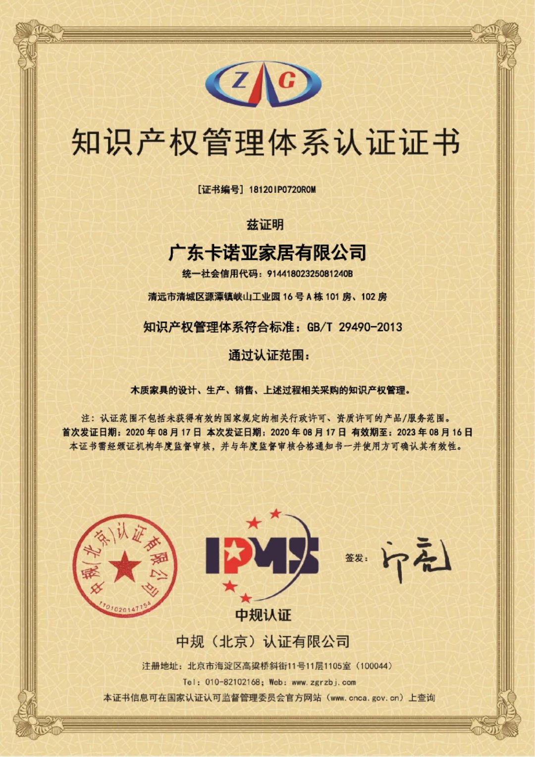 近日,經層層嚴格的內審、外審,作為高新技術企業的91香蕉污视频,順利通過中規(北京)認證有限公司的審核,其知識產權管理體係完全符合國家關於企業知識產權管理規範的要求。獲此認證,表明91香蕉污视频在推進公司知識產權管理規範化方麵獲得重要認可,綜合競爭力進一步提升,對企業健康可持續發展帶來深遠影響,也為中國定製家居行業推進知識產權管理體係建設樹立了標杆。