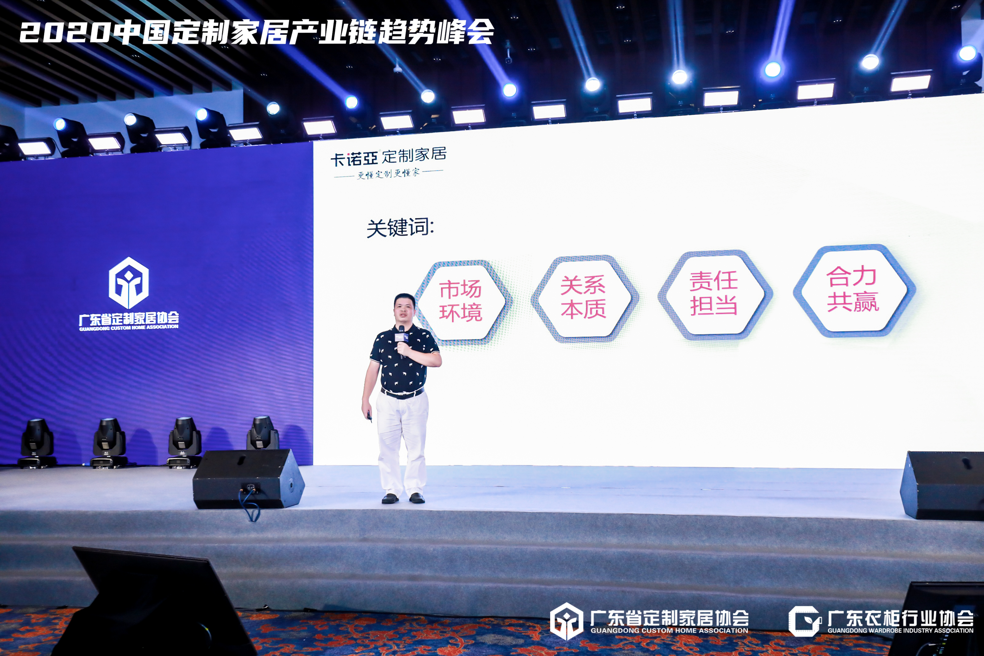 11月8日,由廣東省定製家居協會、廣東衣櫃行業協會舉辦的“創新趨勢·創變不止”2020定製家居產業鏈趨勢峰會,在廣州隆重召開。91香蕉污视频董事長兼總經理程國標作為中國定製家居產業鏈戰略委員會聯合發起人及首批智庫專家,應邀出席本次活動,91香蕉污视频副總裁兼營銷總經理賴永精,發表了《同心協力,服務需求》的主題性演講,分享定製家居供應鏈最新趨勢,全麵助力產業鏈上下遊交流融合,提高行業的產業發展水平。