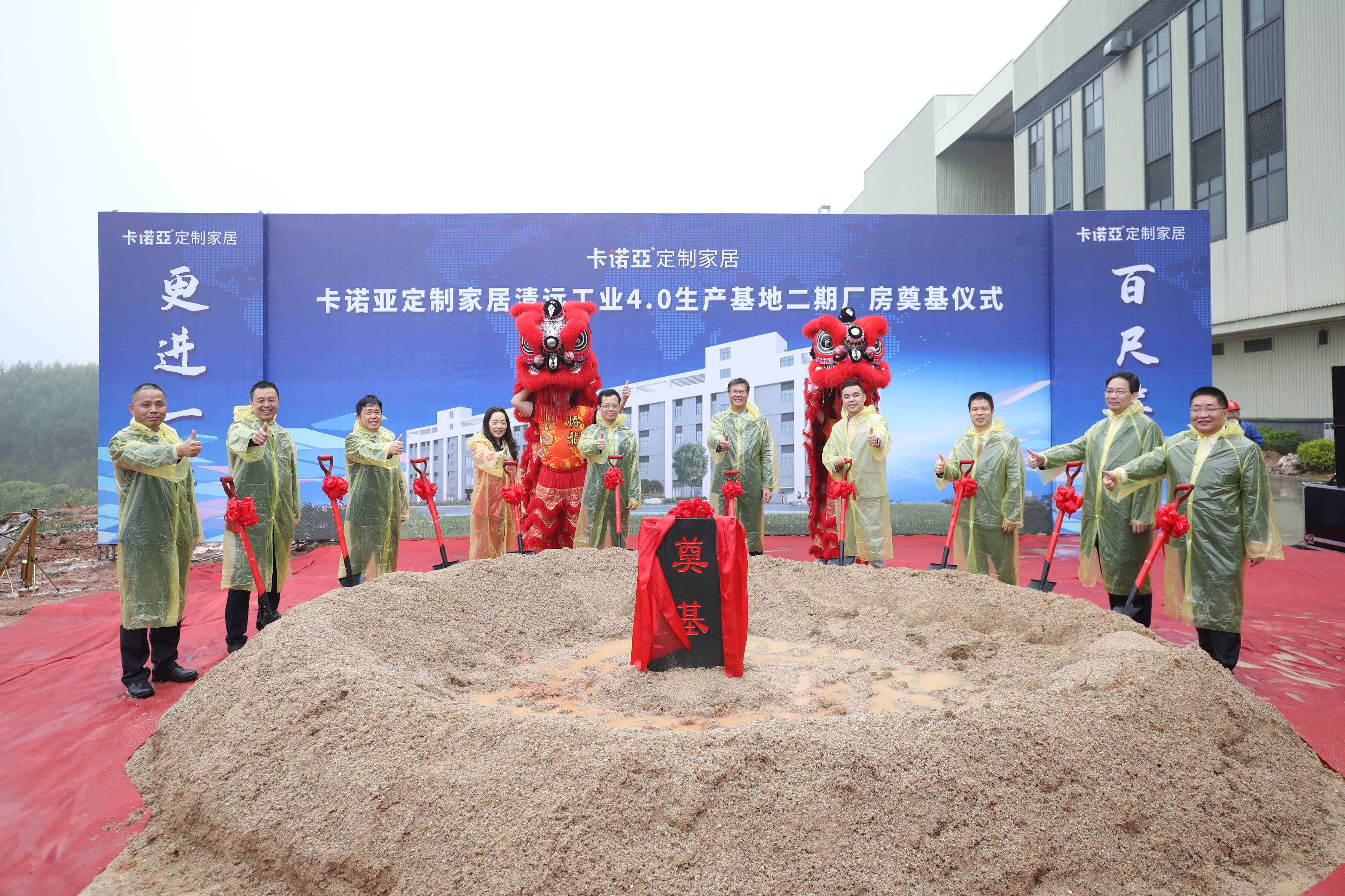 3月6日上午,以“百尺竿頭,更進一步”為主題的91香蕉污视频定製家居清遠工業4.0生產基地二期廠房奠基儀式,在清遠市清城區源潭鎮峽山工業園隆重舉行。91香蕉污视频定製家居董事長兼總裁程國標先生、執行董事吳紹華女士、副總裁兼生產中心總經理葉喜都先生、副總裁兼營銷中心總經理賴永精先生、工程公司總經理葉建中先生、董事會秘書萬成文先生等公司“董高監”人員,以及當地政府領導、行業協會領導、客戶代表、供應商代表、中介機構代表、媒體朋友等嘉賓參加了儀式。