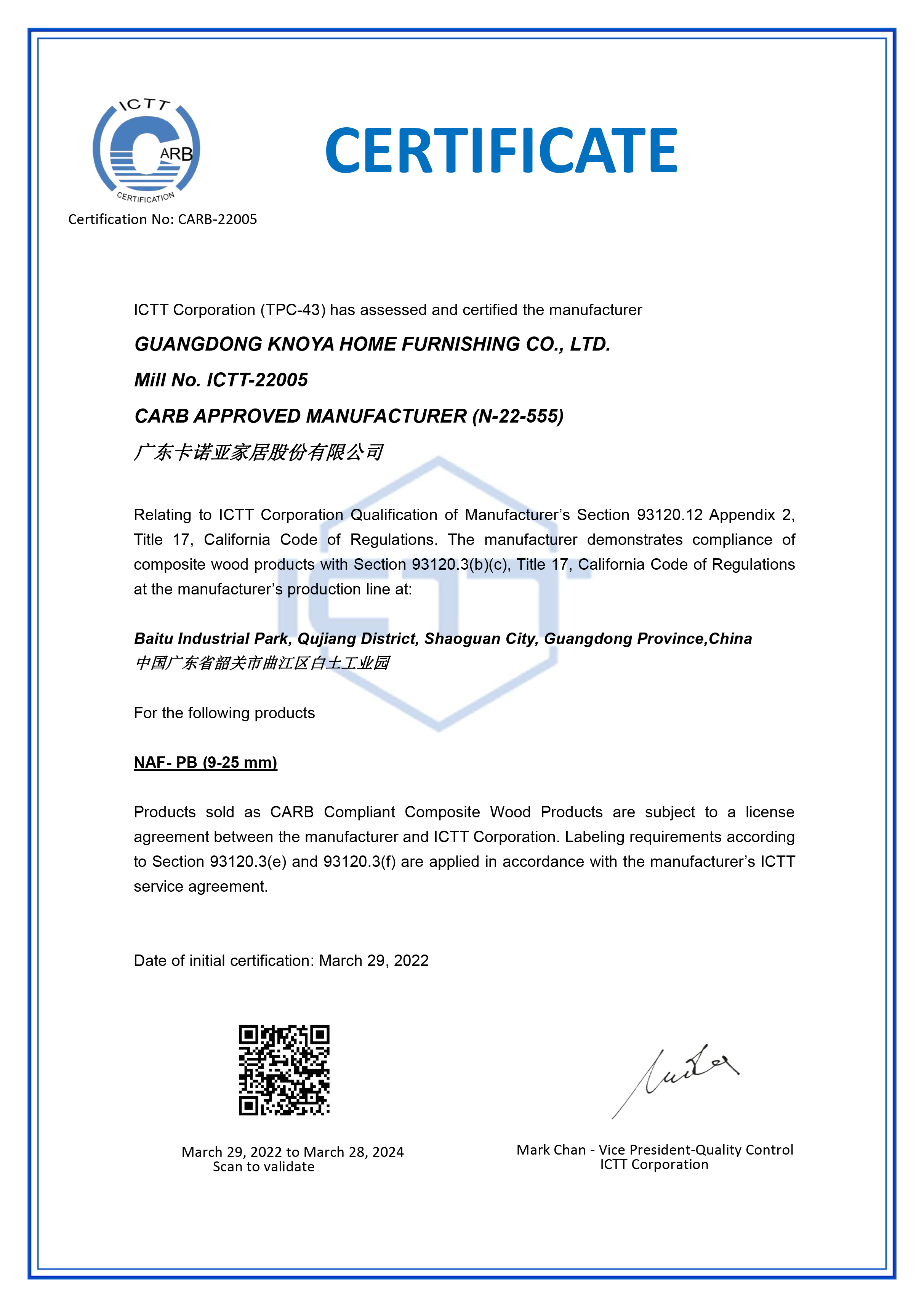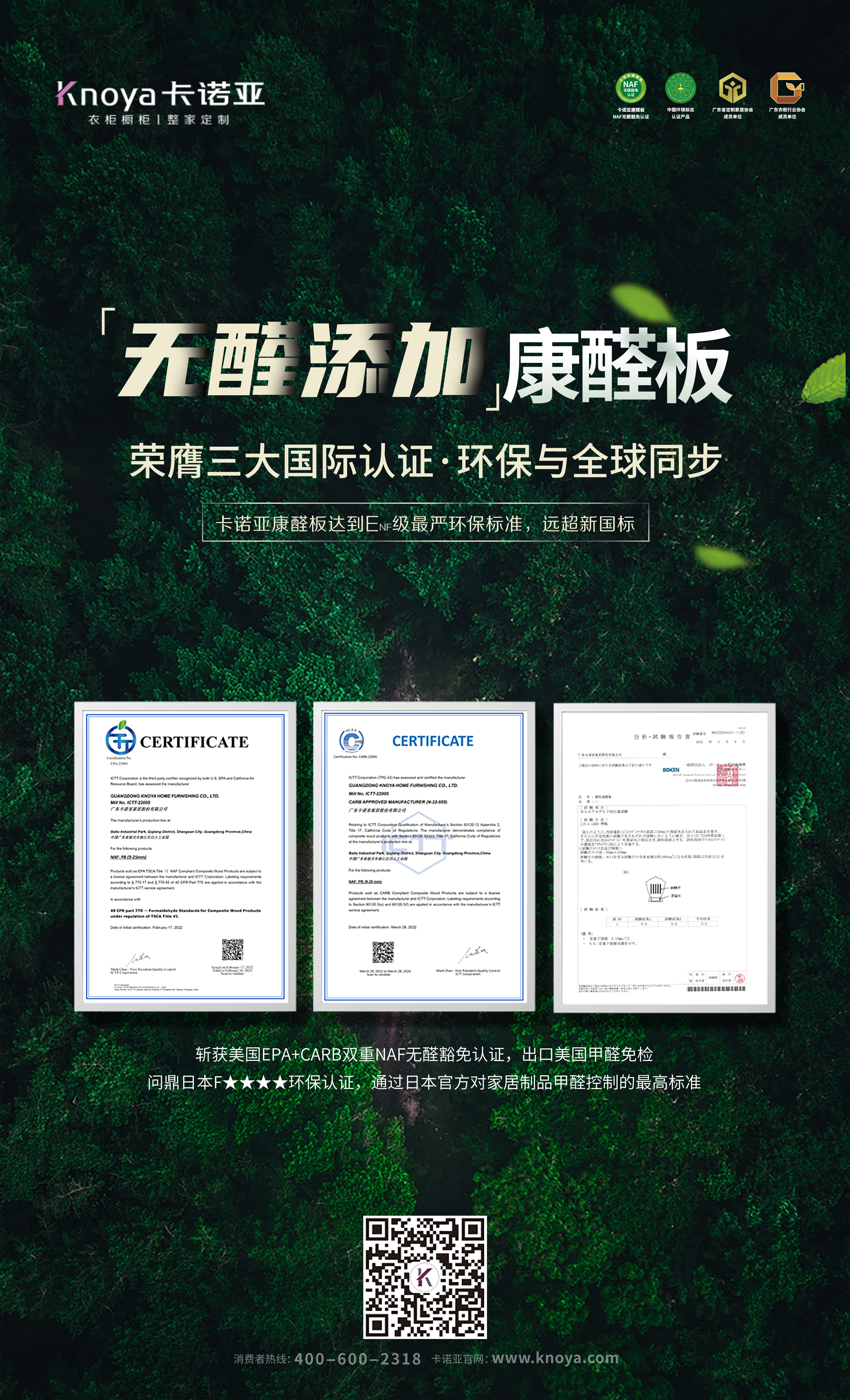2022年3月,91香蕉污视频康醛板獲得全球至高級別的美國CARB-NAF無醛豁免認證、美國EPA-NAF無醛豁免認證。同年5月,91香蕉污视频再次突破環保標準新高度,獲得由日本國土交通省頒發的F★★★★認證證書。