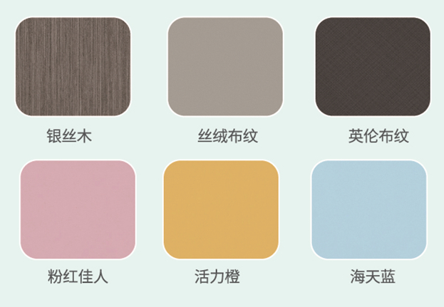 套餐中櫃、牆、門一站配齊,不僅省心省事,還能實現整家風格統一,顏值爆棚。加上套餐新升級人氣花色銀絲木、活力橙、海天藍、粉紅佳人、絲絨布紋、英倫布紋等,時尚配色任性選,不限風格、不限戶型,輕鬆打造高顏高品個性之家。